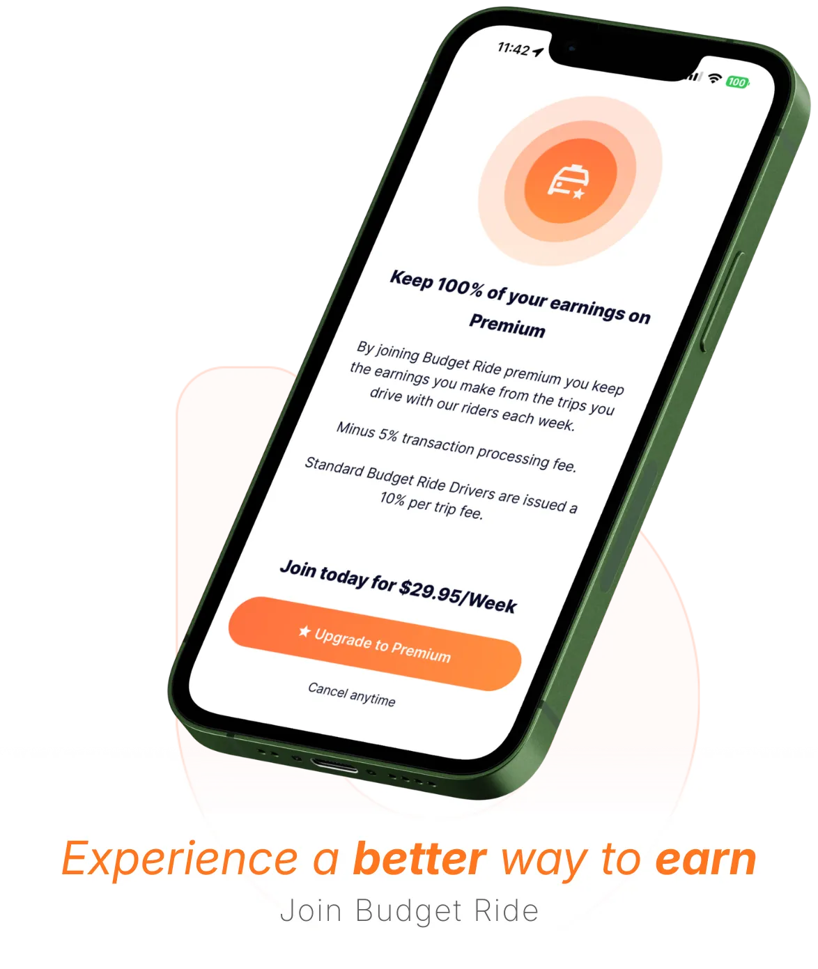 Pay $29.95/week. Keep 100% of every fare.